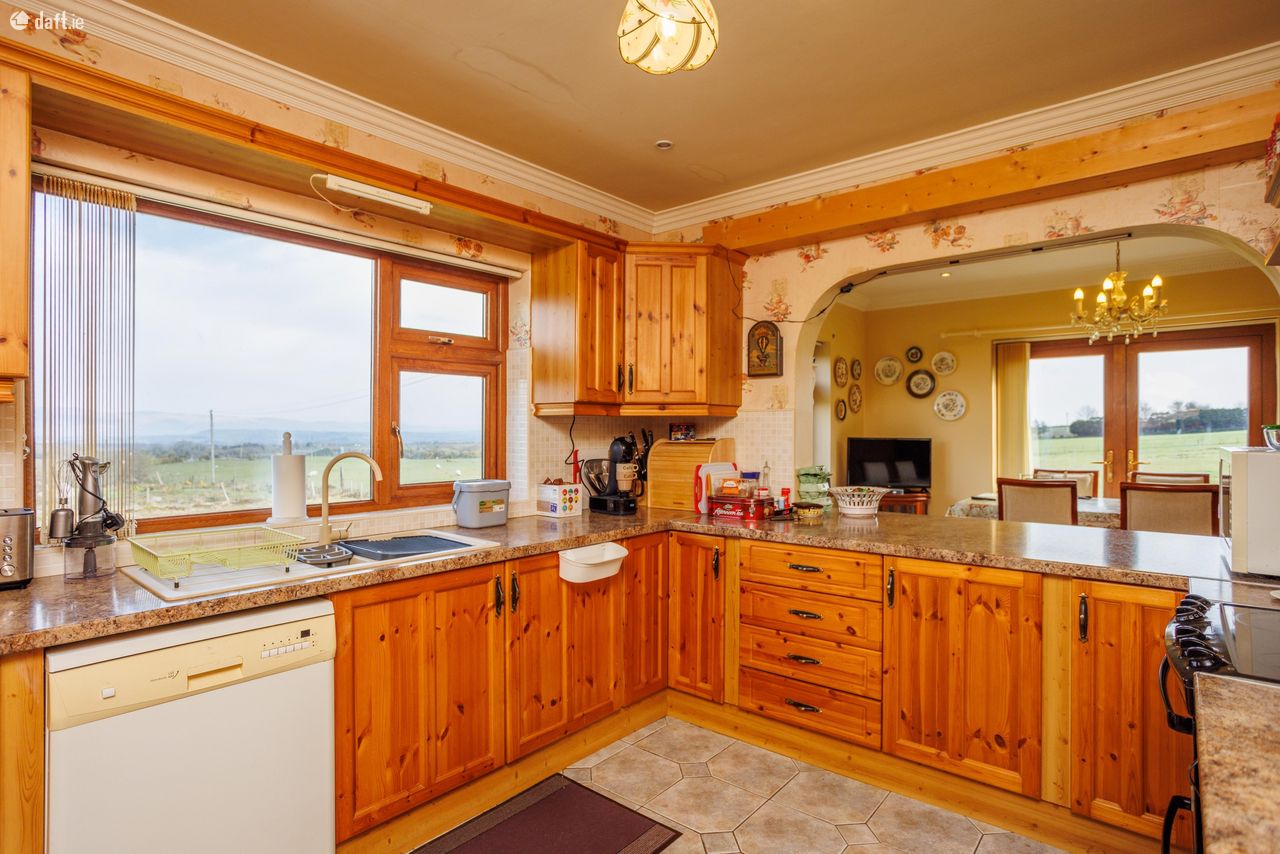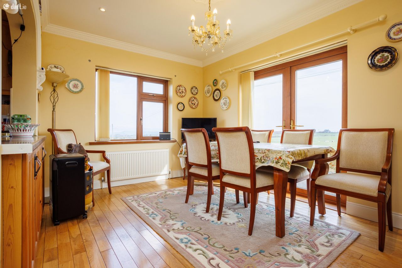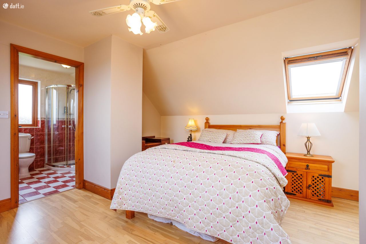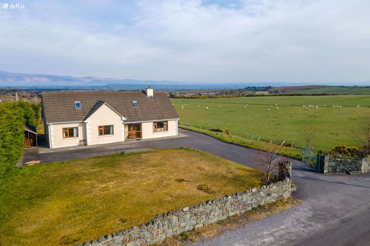Great opportunity to purchase an attractive 6 bed 3 en suite dormer bungalow constructed in 2000. Floor space of approx 2100 sq/ft on 0.6 acre mature site. Well presented home with exceptional amounts of space and natural light throughout. Excellent views in a countryside location. All major towns are within easy commuting distance. Ideal family home for those looking to live in a panoramic, quiet setting. The current owner has maintained the property very well. Accommodation Ground Floor: Entrance hallway 13 feet 9 inches X 9 feet 7 inches Carpeted Central hallway 32 2 X 3 2 Carpeted Living room 15 9 X 11 9 Timber floor, solid fuel stove, feature coving Kitchen 11 9 X 9 9 Fully fitted kitchen Dining room 13 6 x 9 8 Timber floor, sliding doors Utility 7 6 X 3 10 Floor & wall units Bedroom One 12 9 X 9 8 Carpeted, built-in wardrobe Ensuite 6 10 X 4 5 Fully tiled, electric shower Bedroom Two 13 X 11 9 Built- in wardrobe, carpeted Bedroom Three 11 X 8 7 Carpeted Bedroom Four/study 9 8 X 8 4 Carpeted Bathroom 9 9 X 5 6 Fully tiled First floor: Landing 8 feet 1 inch X 7 feet 10 inches Timber floor Bedroom Five 14 6 X 11 2 Balcony area, double doors, timber floor Ensuite 9 3 X 5 7 Fully tiled Two walk-in wardrobes Bedroom Six 14 7 X 10 10 Timber floor, two walk-in wardrobes Ensuite 9 X 6 4 Fully tiled VIEWING HIGHLY RECOMMENDED SO CALL ADRIAN ON 087 1303206