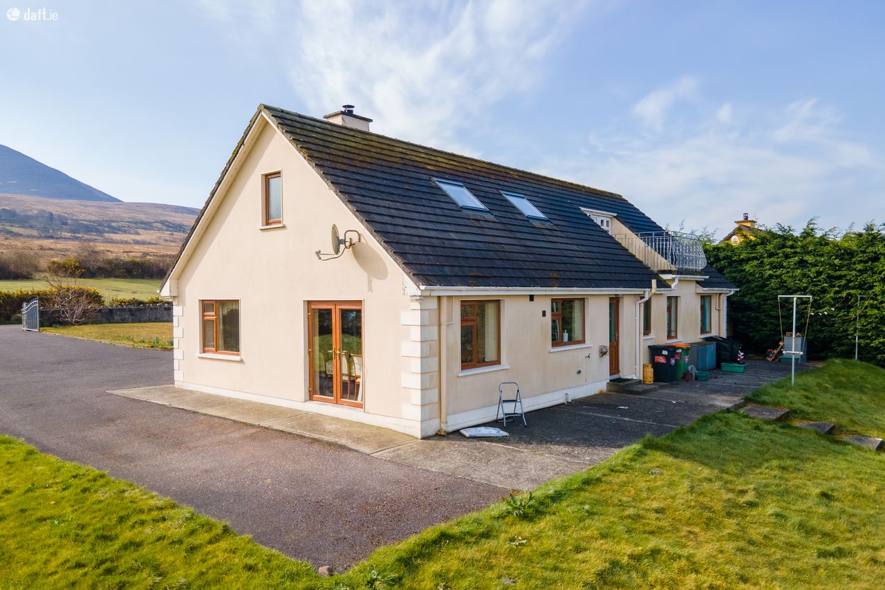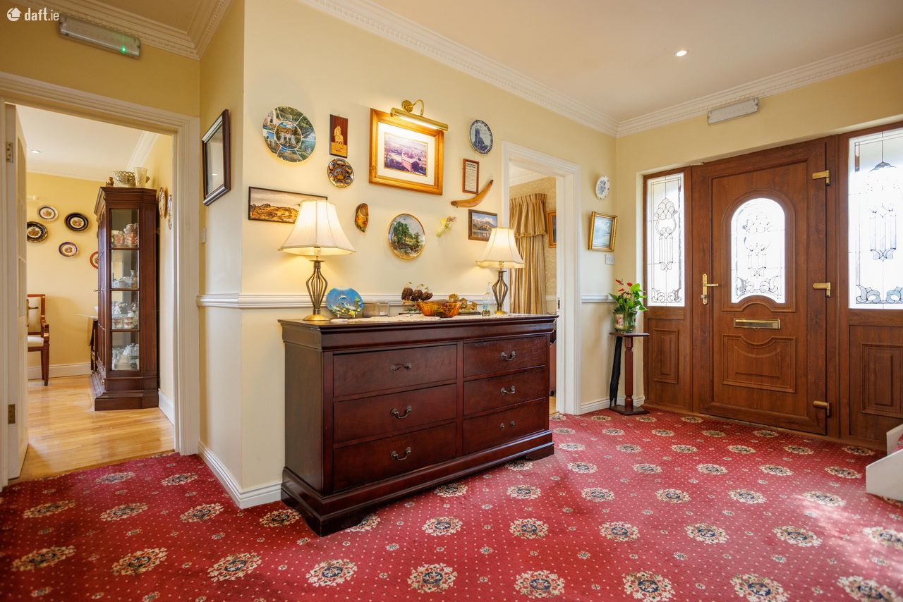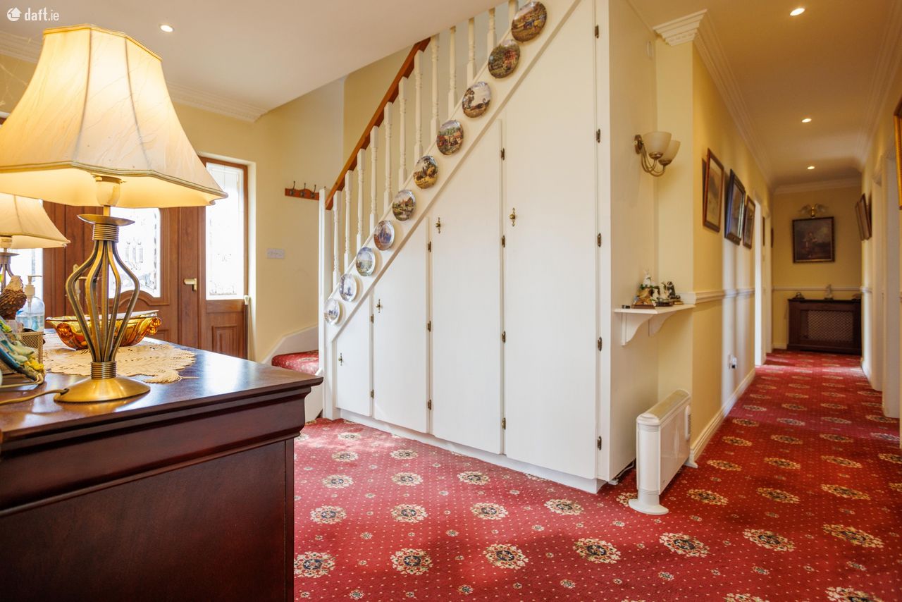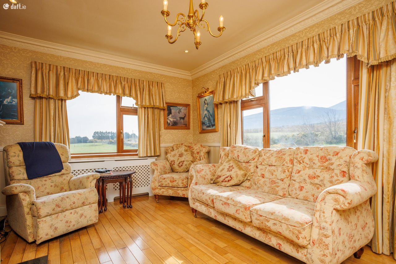 Great opportunity to purchase an attractive 6 bed 3 en suite dormer bungalow constructed in 2000. Floor space of approx 2100 sq/ft on 0.6 acre mature site. Well presented home with exceptional amounts of space and natural light throughout. Excellent views in a countryside location. All major towns are within easy commuting distance. Ideal family home for those looking to live in a panoramic, quiet setting. The current owner has maintained the property very well. Accommodation Ground Floor: Entrance hallway 13 feet 9 inches X 9 feet 7 inches Carpeted Central hallway 32 2 X 3 2 Carpeted Living room 15 9 X 11 9 Timber floor, solid fuel stove, feature coving Kitchen 11 9 X 9 9 Fully fitted kitchen Dining room 13 6 x 9 8 Timber floor, sliding doors Utility 7 6 X 3 10 Floor & wall units Bedroom One 12 9 X 9 8 Carpeted, built-in wardrobe Ensuite 6 10 X 4 5 Fully tiled, electric shower Bedroom Two 13 X 11 9 Built- in wardrobe, carpeted Bedroom Three 11 X 8 7 Carpeted Bedroom Four/study 9 8 X 8 4 Carpeted Bathroom 9 9 X 5 6 Fully tiled First floor: Landing 8 feet 1 inch X 7 feet 10 inches Timber floor Bedroom Five 14 6 X 11 2 Balcony area, double doors, timber floor Ensuite 9 3 X 5 7 Fully tiled Two walk-in wardrobes Bedroom Six 14 7 X 10 10 Timber floor, two walk-in wardrobes Ensuite 9 X 6 4 Fully tiled VIEWING HIGHLY RECOMMENDED SO CALL ADRIAN ON 087 1303206