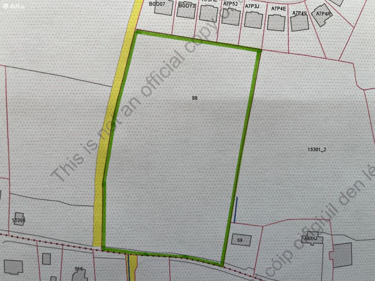 The land is located at Sunhill and is more specifically identified in part of Folio 34997F (Plan 88). We are offering for sale circa 4.27 acres with development potential, only 1 km from Killorglin. For further info call Adrian on 087 1303206. Eircode V93 D2E1 has been used for directional purposes only.