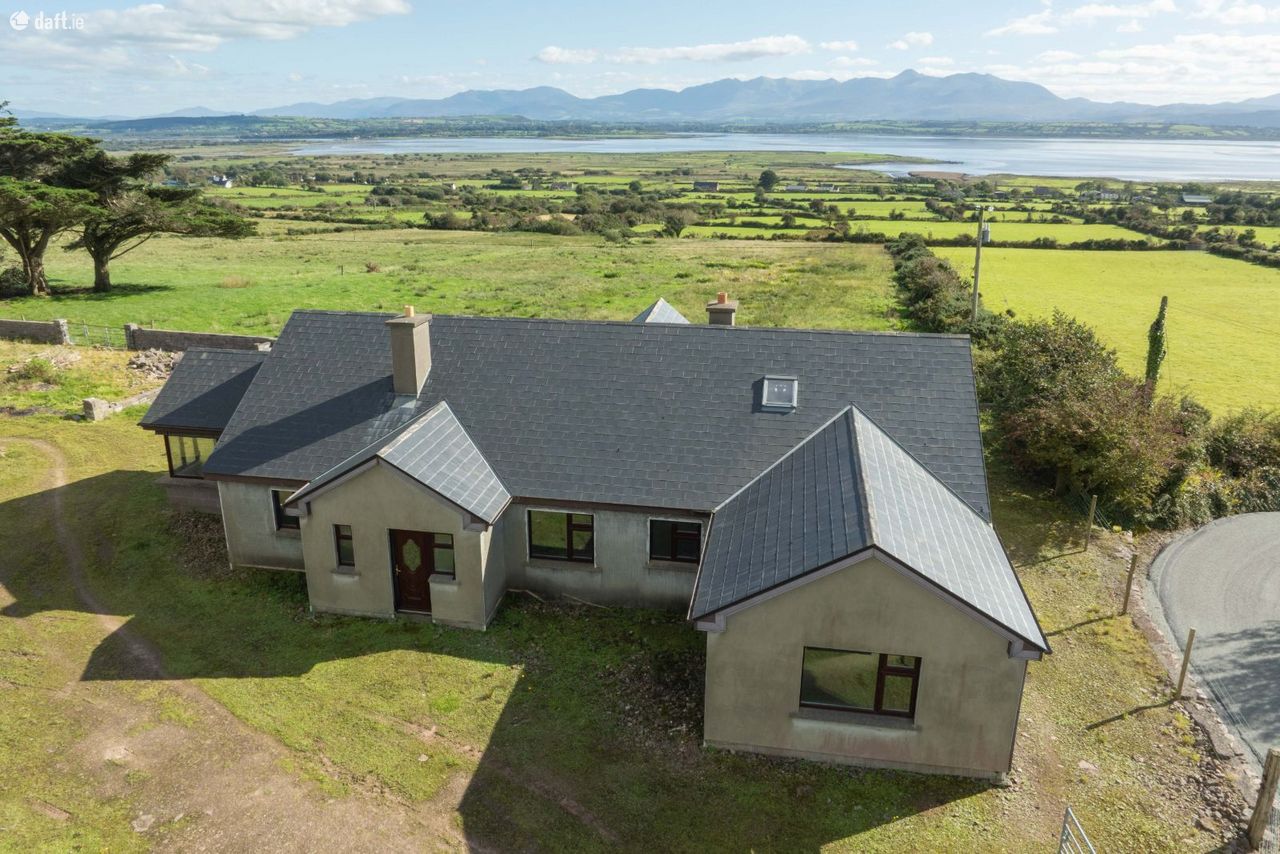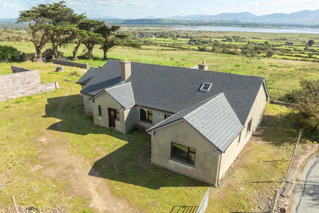 We are delighted to offer this unique 4 bedroom (2 ensuite) bungalow approx. 2126 sq/ft on an elevated 0.5 acre site. The property needs completion and we are selling as a shell. This unique location has panoramic commanding views. Excellent potential here with the opportunity to complete and finish to ones own taste. Entrance Hallway 4.48m X 2.27m Central Hallway 7.12m X 1.21m Living Room 5.02m X 4.57m Kitchen/Dining Area 9m X 4m Utility 3.46m X 2.49m WC 1.47m X 1.44m Conservatory 4m X 3.66m Hotpress 2.4m X 1.69m Bedroom One 3.2m X 3.1m Bathroom 3.71m X 2.27m Bedroom Two 3.86m X 3.72m En Suite 2.74m X 1.49m Walk In wardrobe 1.73m X 1.5m Bedroom Three 3.4m X 3.29m Bedroom Four 4.53m X 3.36m En Suite 2m X 1.75m Walk in Wardrobe 2m X 1.4m Hallway 6.22m X 1.13m Castlemaine 9.5 km Inch Beach 12 km Milltown 13 km Killorglin 20 km Kerry Airport 23 km Tralee 25 km Killarney 30 km CALL ADRIAN ON 087 1303206 FOR AN APPOINTMENT TO VIEW