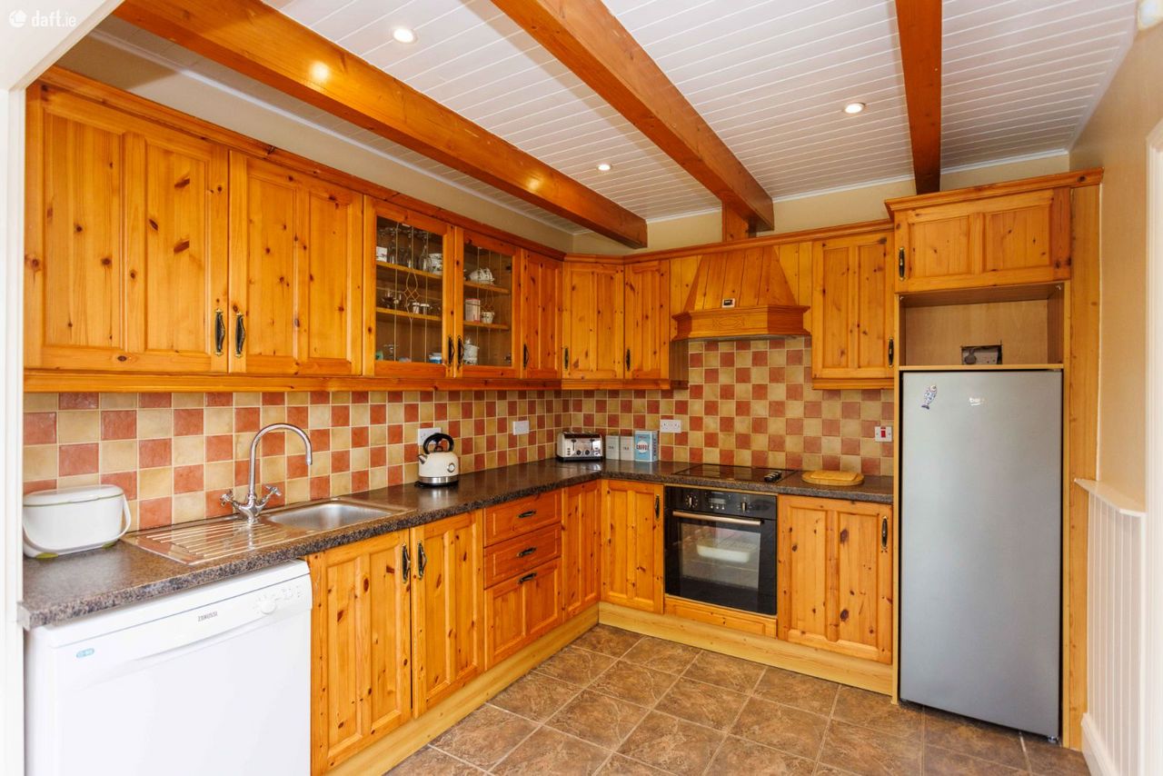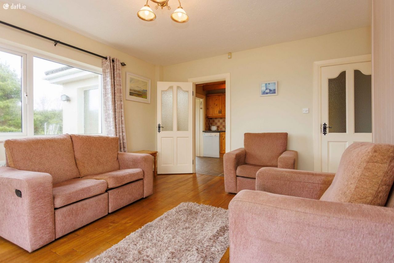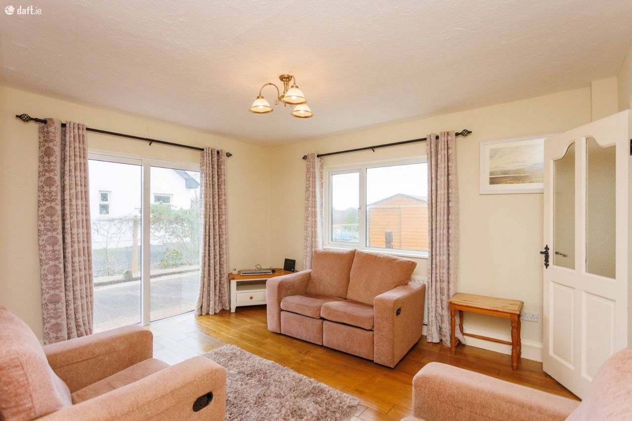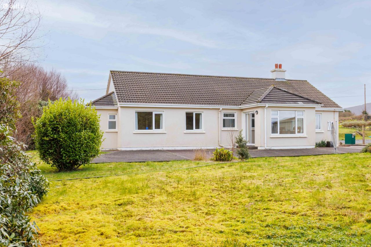 We have been instructed to offer for sale this detached 4 bed bungalow style residence at Ballycleave, Glenbeigh which was built in 1982 on circa 0.5 acre landscaped site. The house is in very good structural and decorative order with fitted kitchen, combination of tiled and timber flooring, solid fuel stove and tiled bathrooms. Services include septic tank/percolation area, mains water and electricity. Heating is from oil fired radiators with double glazed PVC windows throughout. The accommodation therein comprises of: Entrance hallway 4.38m X 1.79m tiled floor Central hallway 7.5m X 1.04m tiled floor Sitting room 4.25m X 3.29m solid fuel stove, timber floor, bay window Living room 4.25m X 4.15 timber floor Kitchen/dining area 5.6m X 2.75m fitted kitchen, tiled floor, patio doors, timber beams Bedroom one 4.19m X 3.24m timber floor Ensuite 2.78m X 1.22m tiled floor, electric shower Bedroom two 4.19m X 2.74m timber floor Ensuite 2.84 X 1.22m electric shower, tiled Bedroom three 4.12m X 3.23m timber floor Bedroom four 3.04m X 2.62m timber floor Bathroom 3.04m X 1.85m tiled, electric shower DECEPTIVELY SPACIOUS HOME VERY GOOD CONDITION THROUGHOUT TARMACADAM DRIVEWAY FITTED ALARM DETACHED METAL SHED COUNTRYSIDE LOCATION WITH GOOD VIEWS GLENBEIGH 4.5 KM KILLORGLIN 7.5 KM VIEWING HIGHLY ADVISED Wonderful family home here so for more details or appointment to view call Adrian on 087 1303206.