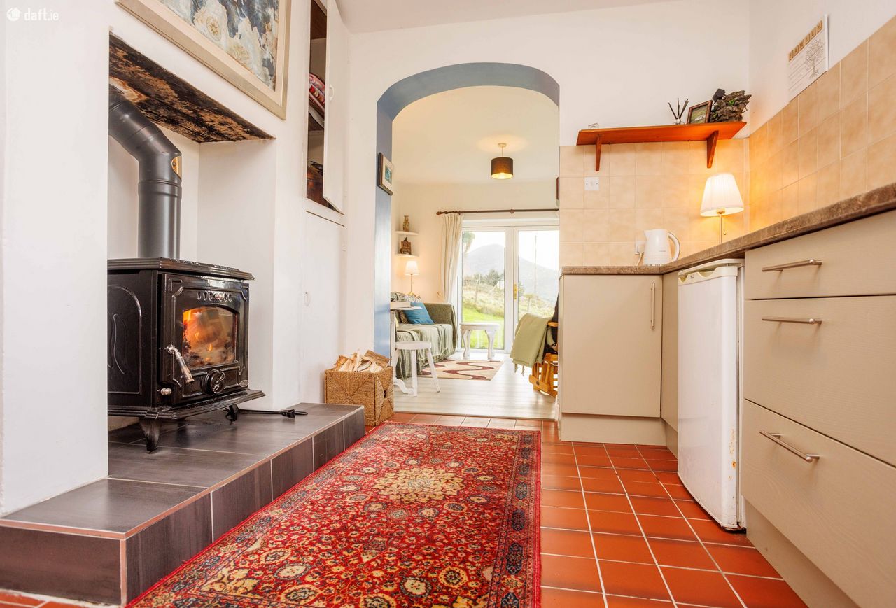 Welcome to The Cottage On The Hill, a quaint 2 bed bungalow on circa 1.1 acres with its surrounding beautiful countryside views. Well maintained by current owners and in good structural and decorative order throughout. Electric heating plus solid fuel stove with back boiler. Mains water, electricity and septic tank system. Accommodation therein comprises of: (measurements in feet & inches) Entrance porch 5 X 4 1 tiled floor Entrance hall 3 6 X 3 1 tiled floor Living room 11 8 X 11 2 timber floor, patio doors Kitchen area 14 3 X 10 1 fitted kitchen, solid fuel stove with back boiler Bedroom One 9 8 X 8 timber floor Ensuite 8 X 3 9 tiled floor, half tiled walls Bedroom Two 9 9 X 9 8 timber floor, electric shower Toilet 6 4 X 3 5 fully tiled Detached utility shed 6 X 6 Rossbeigh beach 2 km Glenbeigh village 4.5 km Kells beach 10 km Dooks golf club 10 km Cromane beach 14 km Killorglin 17 km PANAROMIC MOUNTAIN VIEWS CLOSE TO ROSSBEIGH BEACH NESTLED IN A PRIVATE ELEVATED SETTING PRESENTED TO A HIGH STANDARD VERY CLOSE TO THE NEW GREENWAY BEING SOLD FURNISHED LARGE SITE TURNKEY HOME PICTURESQUE LOCATION CALL ADRIAN ON 087 1303206 FOR AN APPOINTEMENT TO VIEW